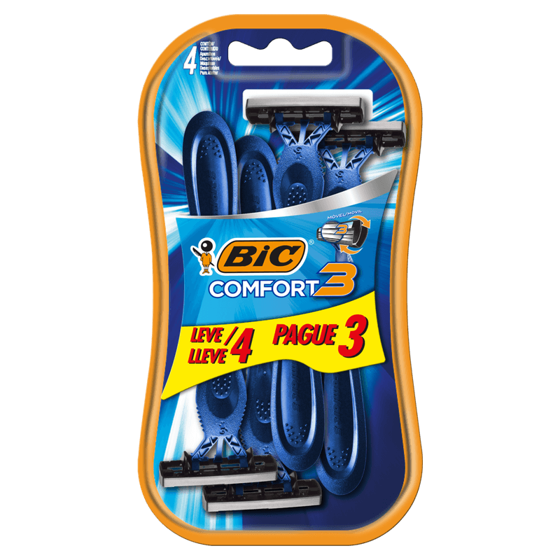 Aparelho Descartável para Barbear Bic Comfort 3 Leve 4 Pague 3 Unidades