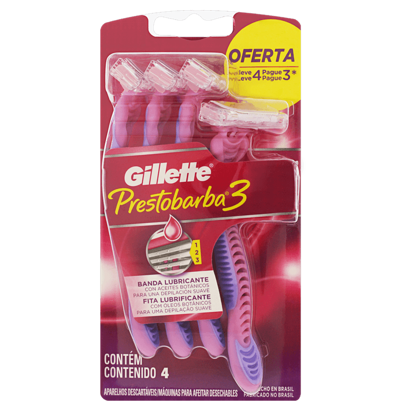 Uma depilação suave começa com um grande aparelho. A cabeça auto ajustável do Prestobarba3 segue delicadamente os contornos do corpo para oferecer a depilação que sua pele merece. O aparelho conta também com três lâminas independentes e fita Lubrastrip para uma experiencia sem cortes e arranhões. ,