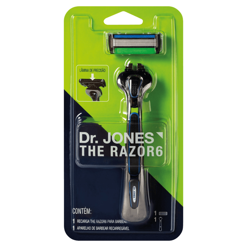 Com 6 lâminas, fita lubrificante, cabo ergonômico e faixa de segurança, o Aparelho de Barbear The Razor6 vai mudar seu jeito de fazer a barba, com segurança, menos passadas e menos irritação na pele. O Trimmer super afiado no verso da cabeça garante acesso aos lugares mais difíceis e precisão para fazer todos os estilos de barba que você quiser. Faça sua melhor escolha! Revolucione seu barbear! Único barbeador com 6 lâminas. Mais lâminas para um barbear mais suave, com menos passadas e menos irritação.