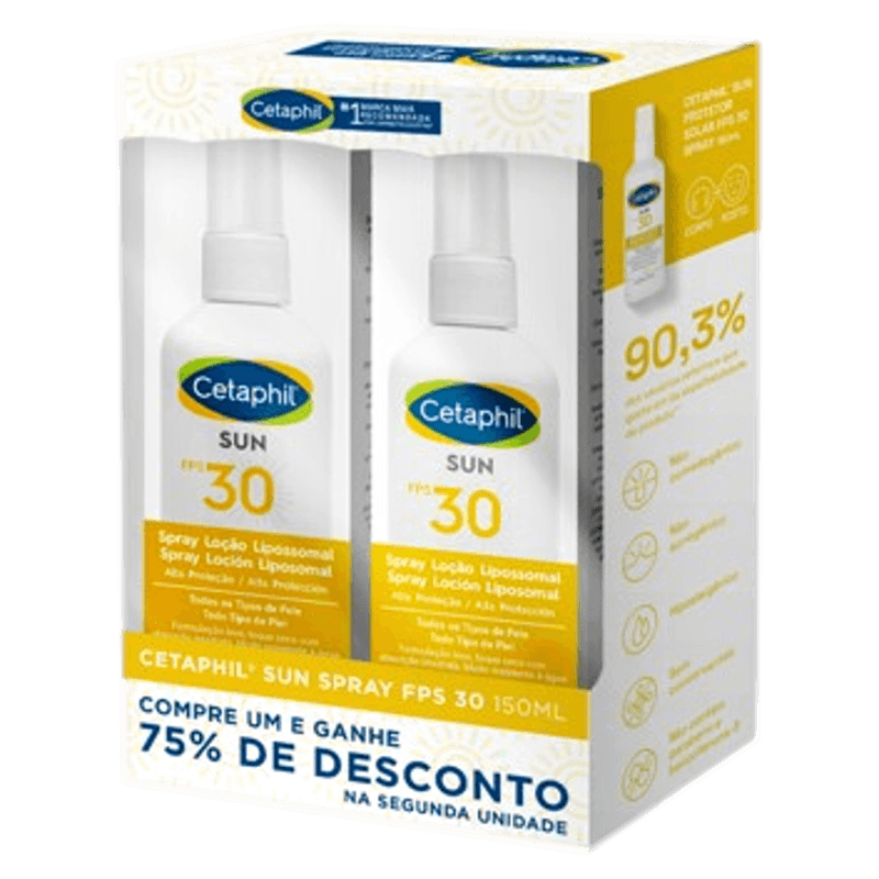 O Kit Protetor Solar Cetaphil Loção Lipossomal Spray Toque Seco FPS 30 é um protetor solar em spray com fórmula lipossomal, indicado para uso facial e corporal. Apresenta FPS 30, textura leve e toque seco, oferecendo proteção contra os raios UVA e UVB para todos os tipos de pele, inclusive as mais sensíveis.