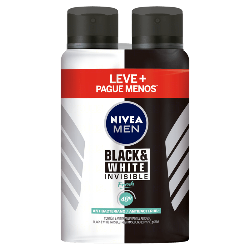 Pack Antitranspirante Aerossol Invisible Black & White Fresh Nivea Men Spray 2 Unidades 150ml Cada Leve Mais Pague Menos