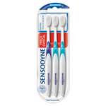 Sensodyne Gentle é uma escova de dente para pessoas com sensibilidades nos dentes. Ela conta com cerdas extramacias e uma cabeça pequena para alcançar mesmo as regiões mais difíceis da boca. Ideal para uma limpeza efetiva na higiene bucal diária, ela traz um design com cabo antiderrapante e pontas finas que limpam suavemente ao redor da gengiva e entre os dentes.