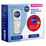 Kit Nivea Sun Rotina de Autocuidado Facial, desenvolvido para proteger, hidratar e prevenir os sinais do envelhecimento. Composto por dois produtos essenciais —