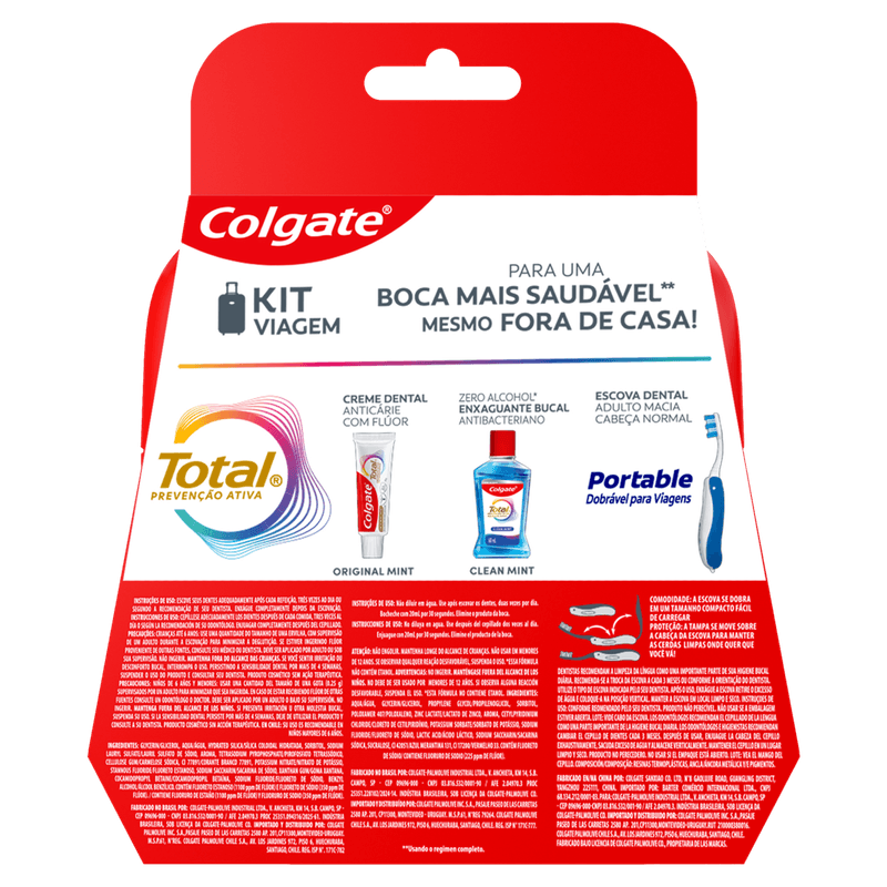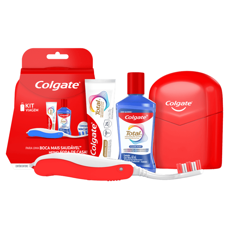 Kit Colgate Prevenção Ativa oferece um cuidado completo para a saúde bucal, reunindo estojo, creme dental com flúor, enxaguante bucal e escova dental macia. Com ação anticárie e antibacteriana, ajuda a manter a boca protegida contra o acúmulo de placa, fortalece o esmalte dos dentes e proporciona sensação de frescor prolongado.