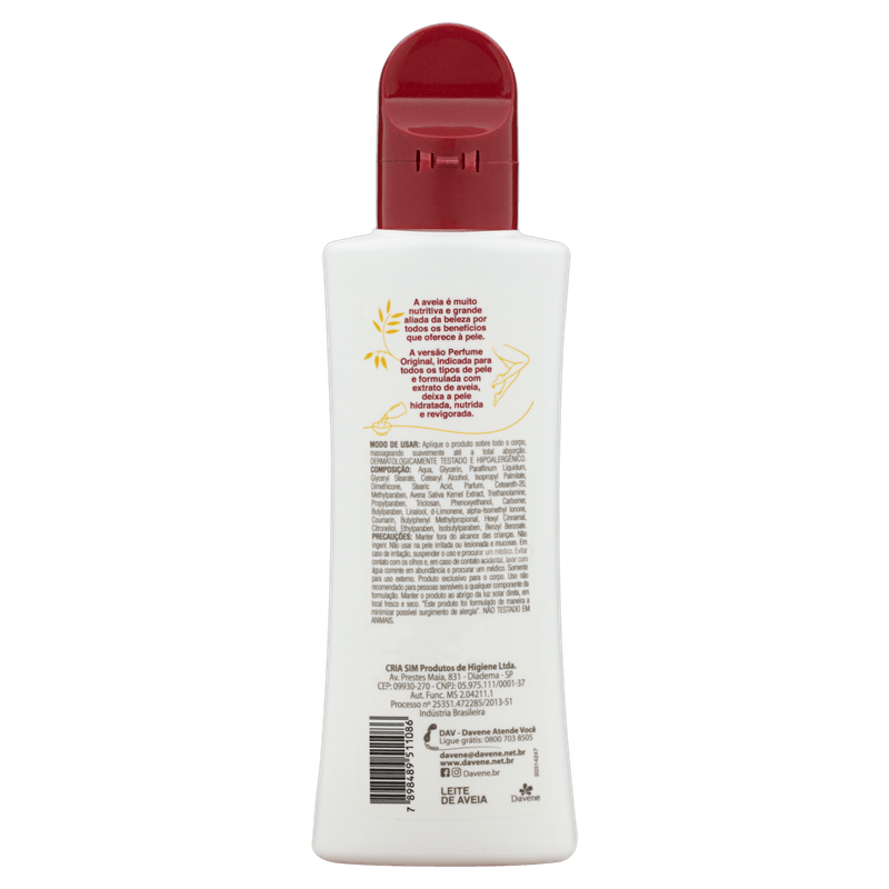 Desodorante Hidratante Corporal Original Davene Leite de Aveia Clássico Frasco 180ml