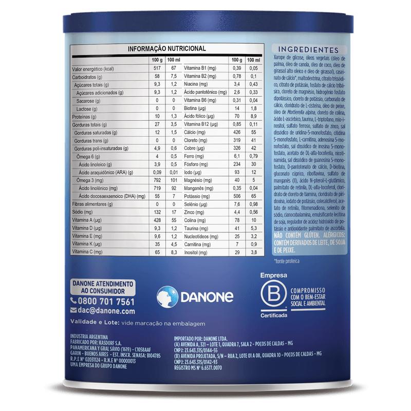 A fórmula atua na nutrição infantil com foco em crianças que precisam de restrição de lactose, oferecendo uma composição balanceada com maltodextrina, óleos vegetais, caseinato, vitaminas e minerais essenciais. Apresenta textura em pó, fácil dissolução e é indicada para uso sob orientação profissional. O produto não substitui o aleitamento materno, que é recomendado pelo Ministério da Saúde até os 2 anos ou mais para prevenção de infecções e alergias.
