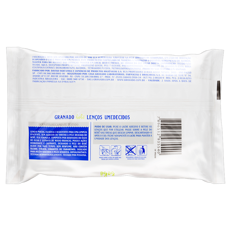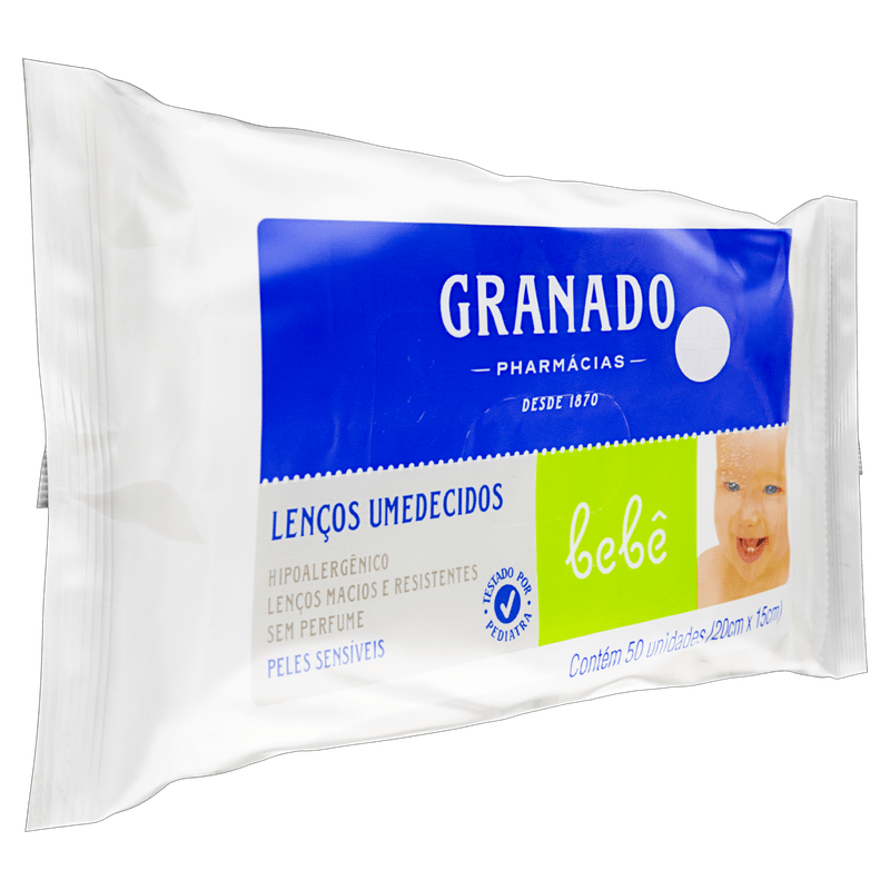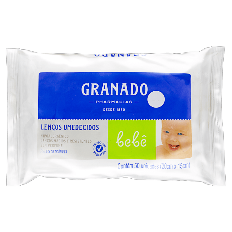 Os Lenços Umedecidos Granado Bebê Pele Sensível vêm em embalagem com 50 unidades, especialmente desenvolvidos para a limpeza delicada da pele sensível de bebês e crianças, promovendo higiene com suavidade e cuidado.