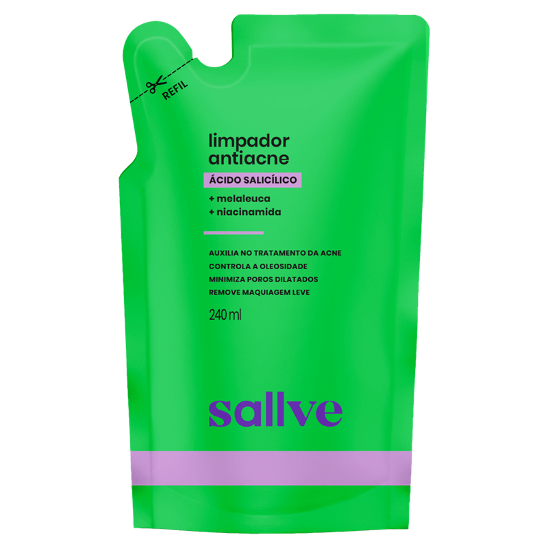 Limpador Antiacne Sallve Ácido Salicílico Refil 240ml é ideal para quem busca uma limpeza profunda e eficaz contra a acne. Com 240ml de produto, ele contém ácido salicílico, um poderoso ativo que combate as imperfeições, ajuda a desobstruir os poros e previne novos surgimentos de acne, deixando a pele mais limpa e suave.