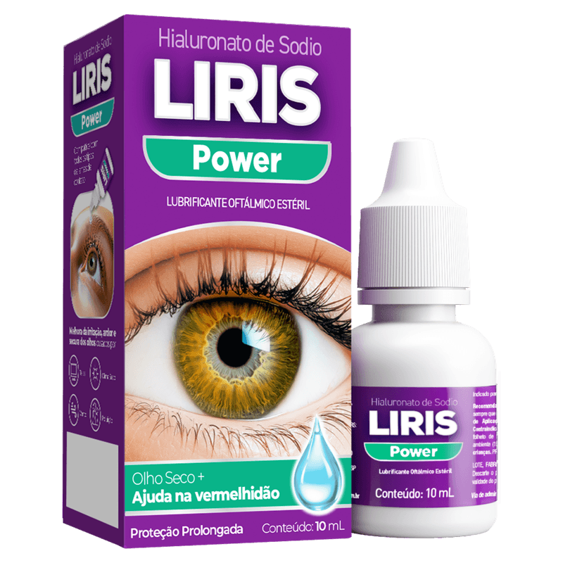 Liris Power Gotas atua formando uma película protetora sobre a superfície ocular, promovendo hidratação contínua e redução da vermelhidão. Sua composição inclui hialuronato de sódio, ácido bórico, edetato dissódico di-hidratado, sorbitol, cloreto de potássio, cloreto de sódio, aminometilpropanol e água purificada. Apresentado em solução oftálmica transparente, o frasco conta com 10 ml de produto, sem necessidade de prescrição médica e indicado para adultos. Produto sem tarja, de venda livre, seguro para uso durante a gravidez e compatível com todos os tipos de lentes de contato.