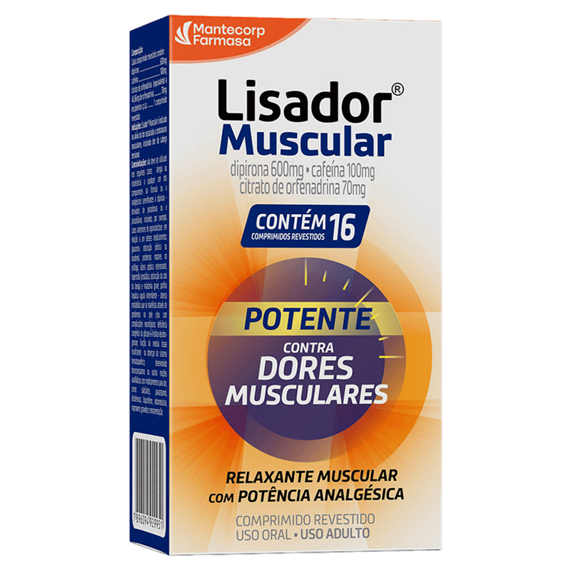 Lisador Muscular deve ser utilizado conforme orientação médica. Evite automedicação e mantenha fora do alcance de crianças. Venda sob prescrição médica. Medicamento genérico conforme a lei n.º 9.787/99.