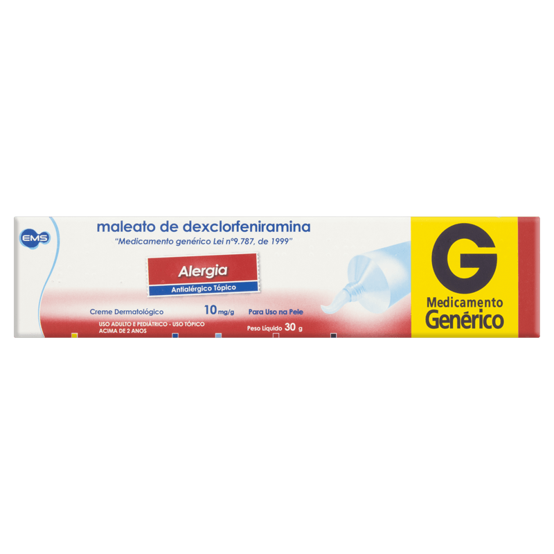 Maleato Dexclorfeniramina 10mg Creme Dermatológico 30g - Genérico - Ems
