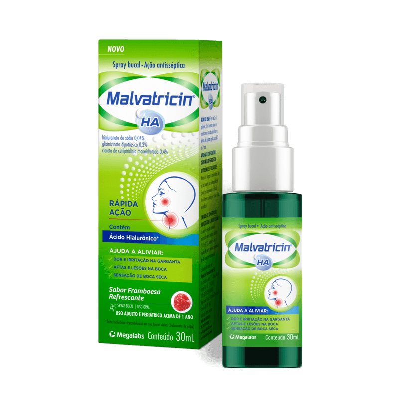Malvatricin HA Spray Framboesa 30ml é um antisséptico indicado para o alívio rápido da dor e irritação na garganta, além de auxiliar no tratamento de aftas, inflamações na gengiva e sensação de boca seca. Com sabor agradável de framboesa, sua fórmula protege e acalma a mucosa bucal, proporcionando conforto imediato após as primeiras aplicações. Ideal para adultos e crianças a partir de 1 ano, é eficaz contra bactérias como Streptococcus pyogenes e Staphylococcus aureus, garantindo uma ação localizada e eficiente.