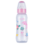 • Cor: Transparente com tampa e anel de vedação rosa, com ilustrações coloridas;