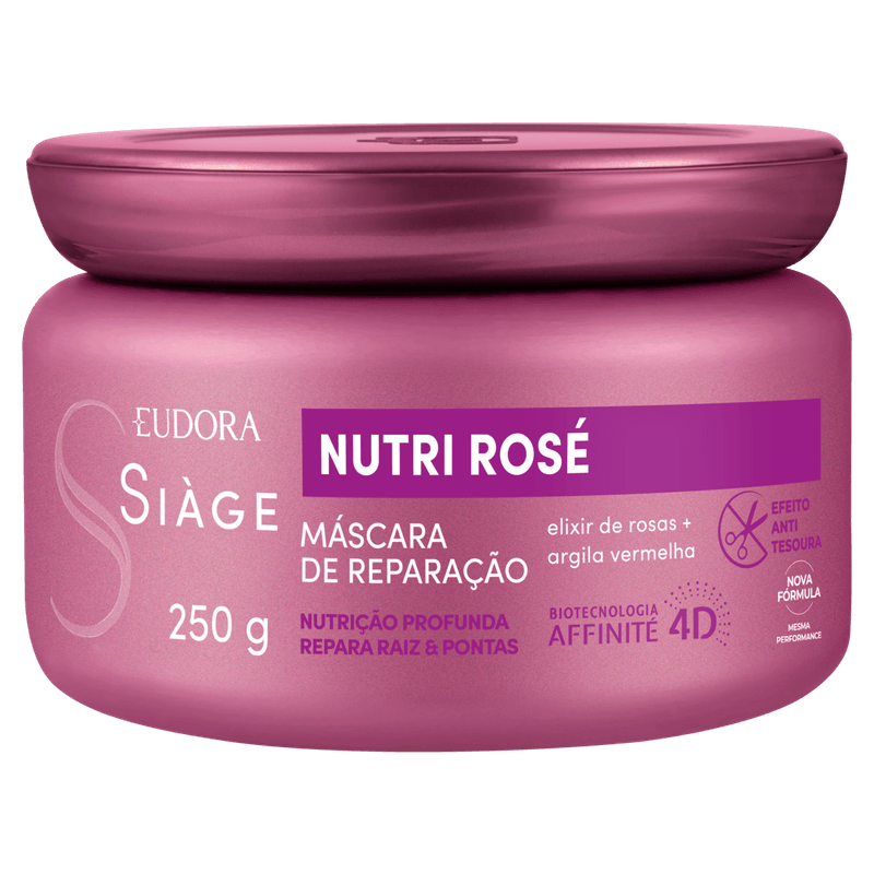 A Máscara de Tratamento Capilar Siàge Nutri Rosé 250g é um creme de tratamento enriquecido com um poderoso elixir de rosas, rico em vitaminas e antioxidantes, e a natural argila vermelha. Ideal para cabelos fragilizados, ela nutre profundamente até a 3ª camada do fio, promovendo reparação instantânea e duradoura sem pesar, devolvendo resistência e brilho natural aos fios.