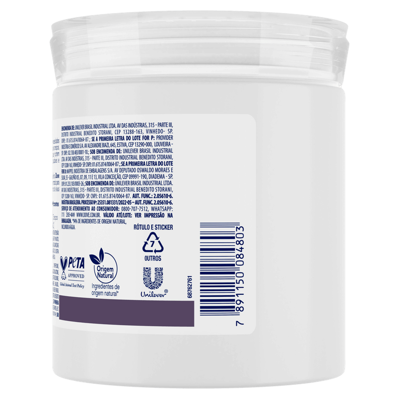 • A Máscara de Tratamento Dove Texturas Reais Alta Potência é feita com ingredientes ativos concentrados que nutrem profundamente os fios, mantendo-os saudáveis e potencializando suas texturas reais