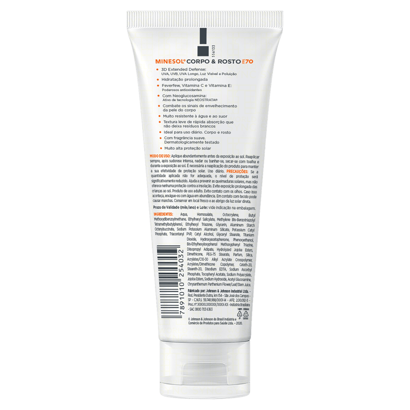 O Protetor Solar Corpo e Rosto FPS 70 Neostrata Minesol é um protetor solar em textura fluida, indicado para uso diário no rosto e corpo. Oferece alta proteção contra raios UVA, UVB, UVA longo, luz visível e poluição, com ação antioxidante e hidratante.