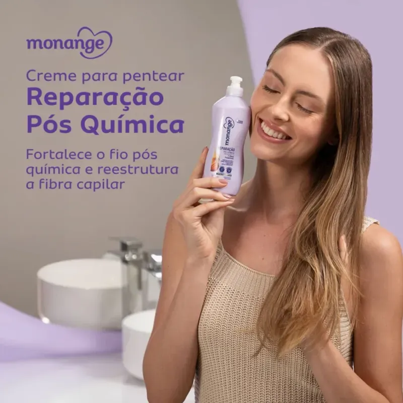O Creme de Pentear Química Sem Drama Monange é ideal para cabelos cacheados e quimicamente tratados, oferecendo nutrição profunda, hidratação intensa e definição dos cachos. Com 7 óleos poderosos, ele prepara os fios antes do processo químico e fortalece-os, garantindo cachos mais saudáveis, macios e com movimento natural.