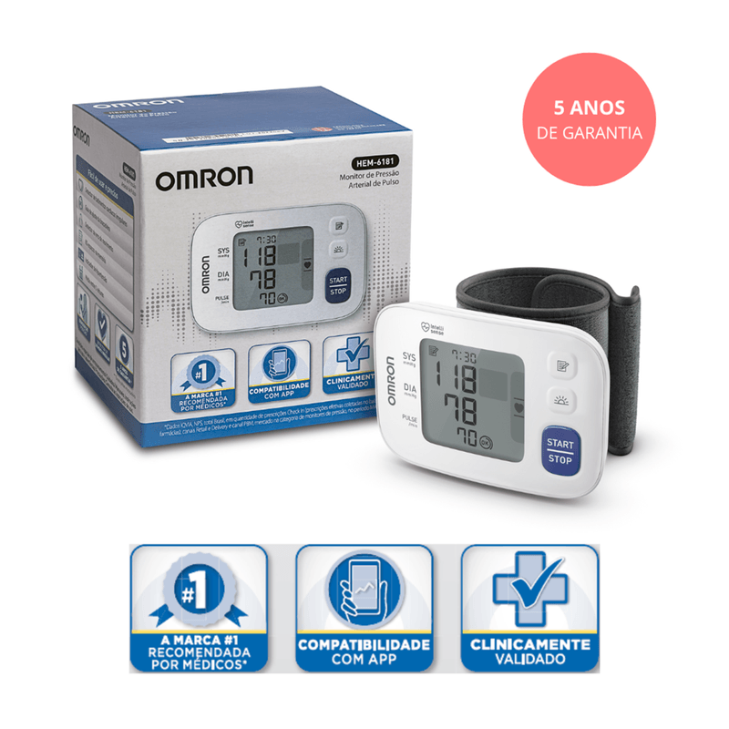 • Compatibilidade: Aplicativo Omron Connect para smartphone