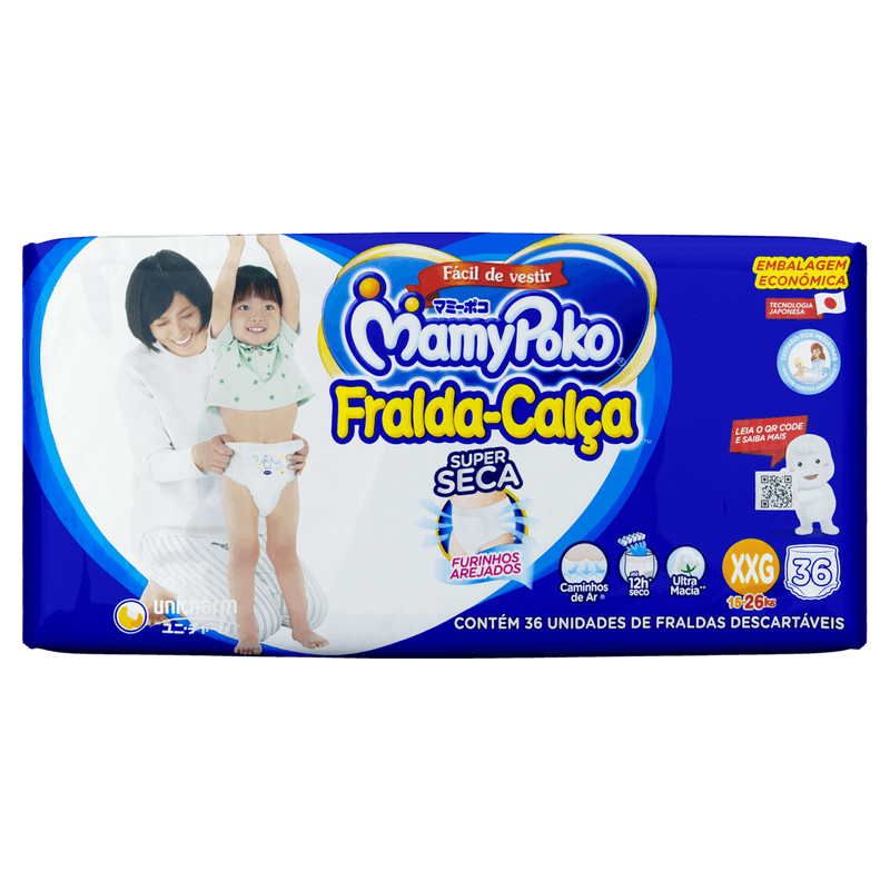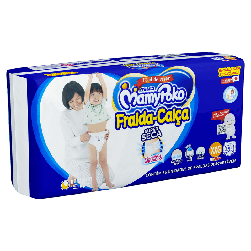 A Fralda-Calça Mamypoko Hiper XXG com 36 unidades é a escolha ideal para pais que buscam praticidade e conforto para bebês ativos. Com design que veste como uma calça, facilita a troca e garante liberdade de movimento. Sua tecnologia japonesa avançada inclui caminhos de ar e furinhos arejados na cintura, promovendo excelente circulação e prevenindo irritações na pele sensível do bebê. A cobertura super seca mantém o pequeno protegido e seco por mais tempo, mesmo em uso diurno ou noturno.