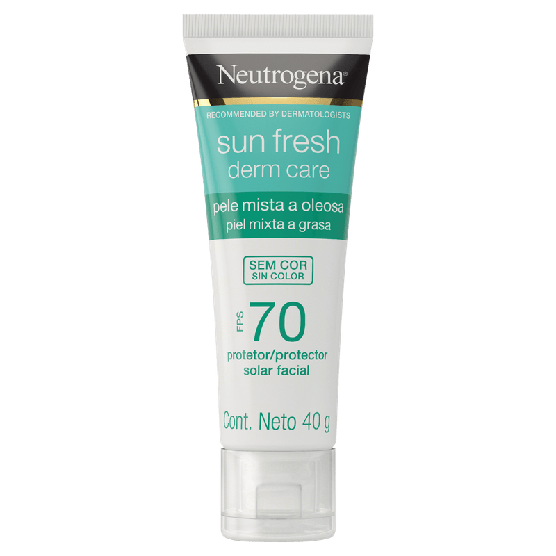 O Protetor Solar Facial Neutrogena Derm Care Sem Cor FPS 70 é um protetor solar em creme indicado para peles mistas a oleosas, oferecendo alta proteção contra os raios UVA, UVB e luz visível, com textura ultraleve e toque seco que controla a oleosidade por até 12 horas.