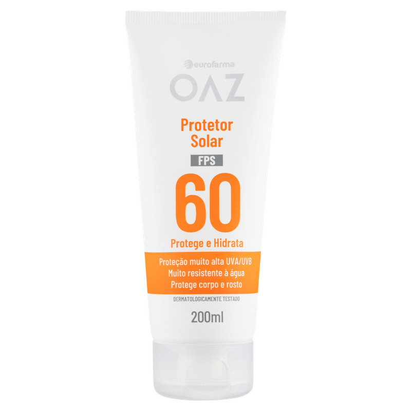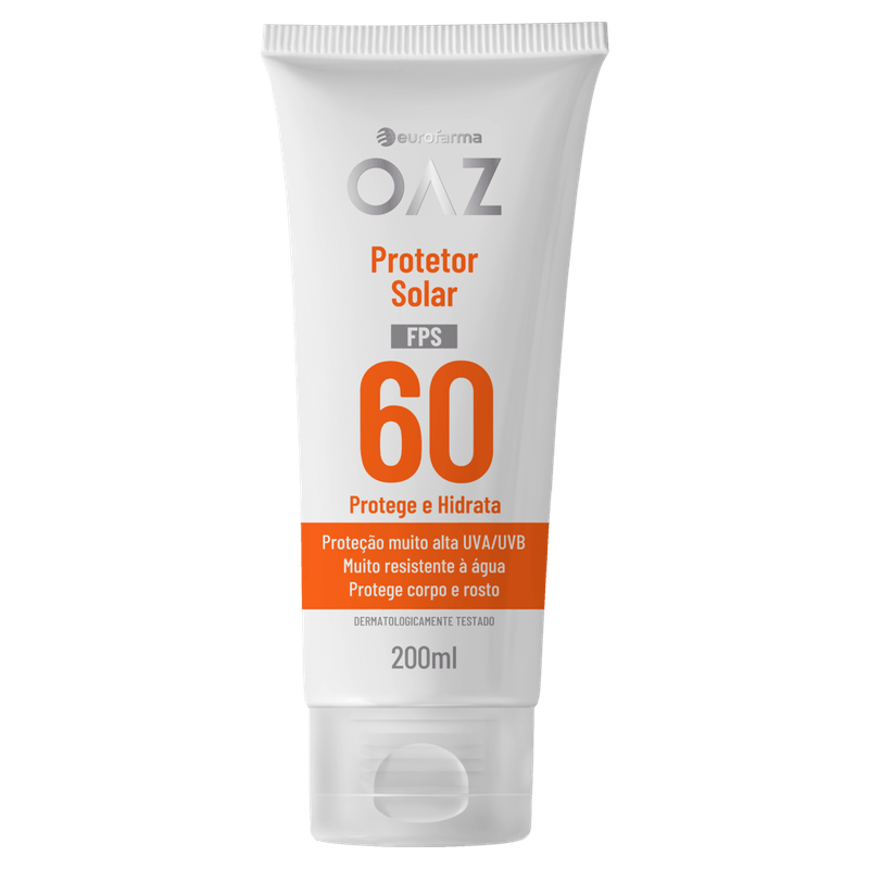 OAZ Protetor Solar FPS 60 é uma loção indicada para proteção muito alta contra os raios UVA e UVB, adequada para uso no rosto e corpo. Sua fórmula resistente à água e ao suor oferece toque seco e hidratação, graças ao óleo de semente de girassol.