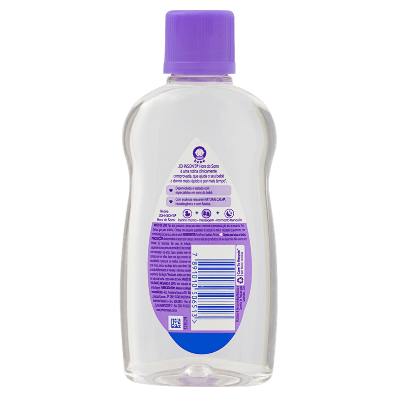 O Óleo para Bebê Hora do Sono Johnson's Baby é um óleo infantil apresentado em frasco de 200 ml, indicado para bebês e crianças pequenas. Desenvolvido para promover a hidratação da pele e auxiliar no relaxamento, é ideal para ser usado após o banho morno, contribuindo para uma rotina de sono mais tranquila.