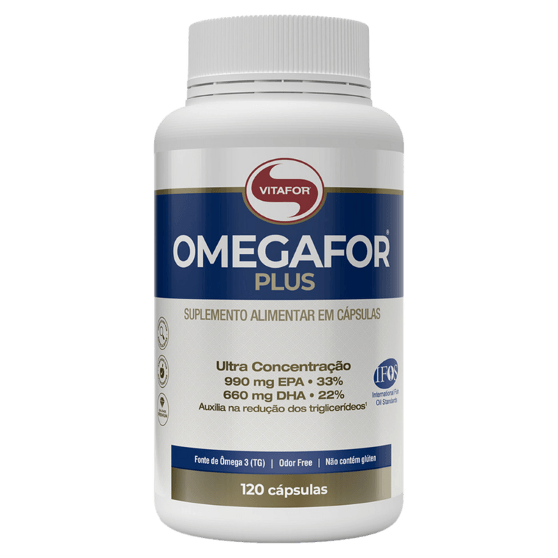 Ômegafor Plus é um suplemento alimentar de óleo de peixe em cápsulas. Possui alta concentração de seus derivados, Ácido Eicosapentaenóico (EPA) - 990mg e Ácido Docosahexaenóico (DHA) - 660mg, extraído através de processo de alta tecnologia onde se isenta de impurezas e metais pesados, certificado pelo Programa Internacional de Padrões de Óleo de Peixe (IFOS ™). Fonte de ômega-3 (TG). Possui derivados de ômega-3: 990 mg de ácido eicosapentaenóico (EPA) e 660 mg de ácido docosahexaenóico (DHA). Com certificação do Programa Internacional de Padrões de Óleo de Peixe (IFOS ™). Odor Free.