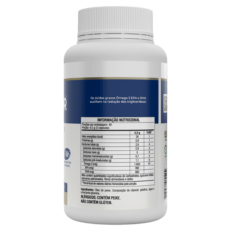 Os Ácidos Graxos Ômega-3 EPA e DHA auxiliam na redução dos triglicerídeos.