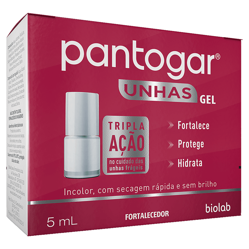 O Pantogar Unhas Gel Top da Biolab é um fortalecedor em gel especialmente formulado para unhas frágeis, quebradiças e com descamação. Com ingredientes como biotina, queratina hidrolisada e extratos vegetais, promove o crescimento saudável, aumenta a resistência e melhora a aparência das unhas, garantindo unhas mais fortes, protegidas e hidratadas.