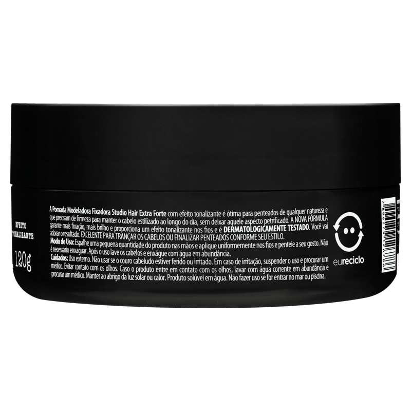 Modo de usar: Aplique uma pequena quantidade da pomada nas mãos e distribua uniformemente nos cabelos secos ou úmidos. Modele conforme desejado e finalize para garantir a fixação extra forte.