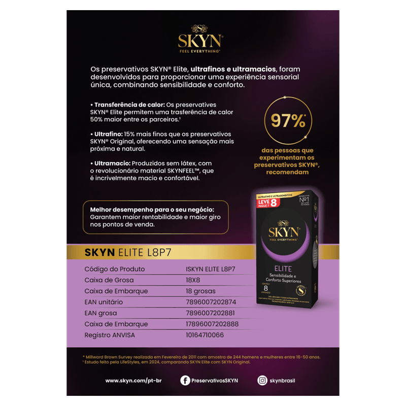 Preservativo Elite Lubrificado é ideal para quem busca segurança, conforto e sensibilidade durante a relação. Feito em poliisopreno sintético, ele é totalmente livre de látex natural, sendo uma excelente opção para pessoas com alergia. Além disso, é 100% lubrificado com óleo de silicone e testado eletronicamente, garantindo proteção e maciez. Transparente, com lados paralelos e extremidade com reservatório, proporciona ajuste perfeito e experiência natural.