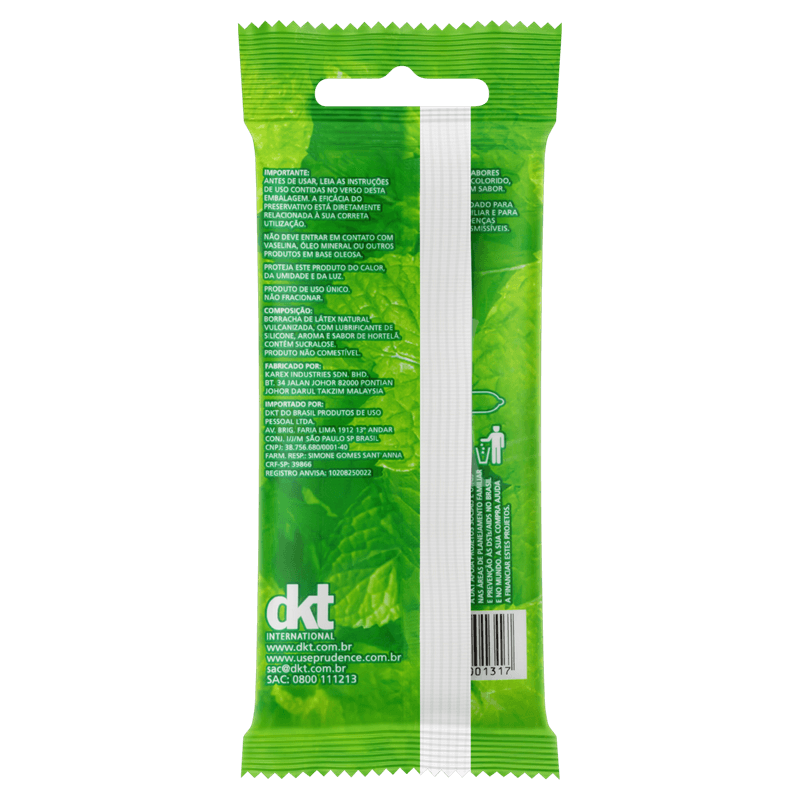 O Preservativo Masculino Texturizado Hortelã Prudence é um produto de proteção com aroma e sabor de hortelã, disponível em embalagem com 6 unidades. Feito de borracha de látex natural vulcanizada, oferece segurança no planejamento familiar e na prevenção de doenças sexualmente transmissíveis.