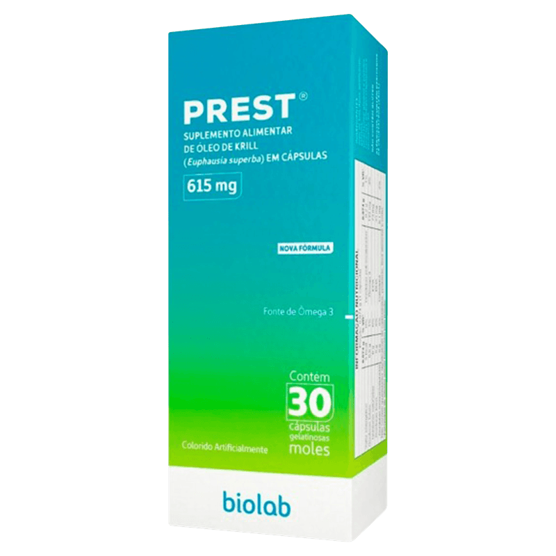 O Biolab Suplemento Óleo de Krill PREST 615 mg é uma fonte natural de ômega-3, essencial para a saúde cardiovascular, cerebral e articular. Cada cápsula gelatinosa contém 615 mg de óleo de krill (Euphausia superba), um ingrediente reconhecido pela alta biodisponibilidade e ação antioxidante, que auxilia na manutenção do bem-estar geral. Ideal para adultos que buscam complementar a dieta com nutrientes que promovem a qualidade de vida e o funcionamento saudável do organismo.