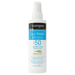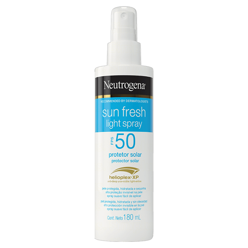 O Protetor Solar Neutrogena Sun Fresh Light Spray FPS 50 é um protetor solar em spray com fórmula oil free, textura ultraleve e toque seco, indicado para todos os tipos de pele, inclusive as oleosas. Sua principal função é oferecer alta proteção contra os raios UVA, UVB e luz visível, prevenindo manchas e envelhecimento precoce.
