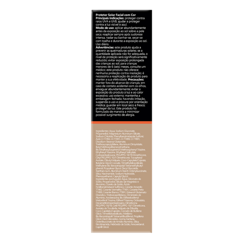 Água, gliconato de sódio, propanodiol, silicato de magnésio e alumínio, cloreto de sódio, ácido fenilbenzimidazol sulfônico, corante amarelo 77492, corante vermelho 77491, corante preto 77499, corante branco 77891, estearoil glutamato dissódico, trietoxicaprililsilano, dimiristato de alumínio, avobenzona, bis-etilhexiloxifenol metoxifenil triazina, etilhexil triazona, octissalato, decametilciclopentasiloxano, dimeticona PEG/PPG-18/18, cetil PEG/PPG-10/1 dimeticona, acetato de tocoferila, adipato de dibutila, coco-caprilato/caprato, cocoato de butileno glicol, trimetilsiloxissilicato, metileno bis-benzotriazolil tetrametilbutilfenol, propileno glicol, decil glicosídeo, goma xantana, octenilsuccinato de amido alumínio, sílica, nicotinamida, hidróxido de sódio, fenoxietanol, caprilil glicol.