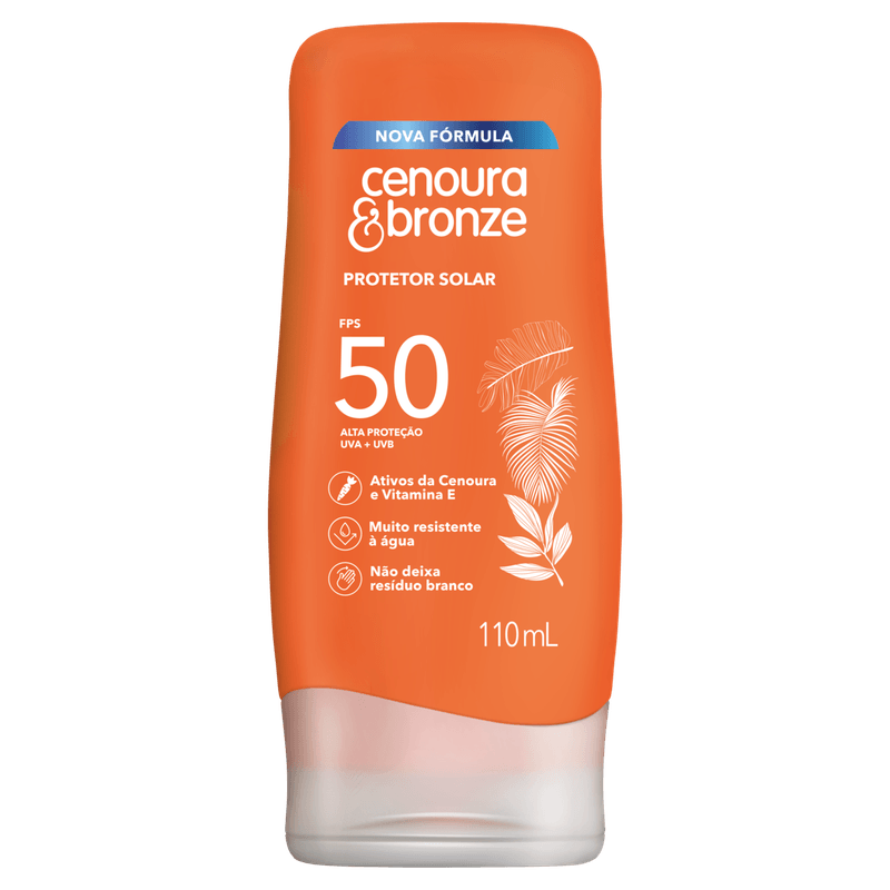 O Protetor Solar Dermo Loção Cenoura & Bronze FPS 50 oferece alta proteção contra os raios UVA e UVB, ideal para quem busca cuidar da pele com uma fórmula leve e de rápida absorção. Enriquecido com ativos da cenoura e vitamina E, proporciona proteção eficaz e ajuda a manter a pele hidratada e saudável durante a exposição solar.