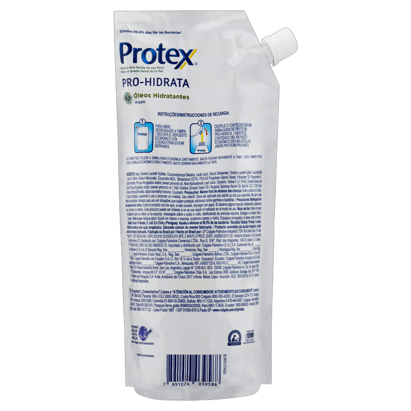 O Sabonete Líquido Pro-Hidrata Argan 500ml da Protex é um sabonete líquido com fragrância de argan, desenvolvido para a limpeza diária da pele, promovendo hidratação e cuidado durante o banho.
