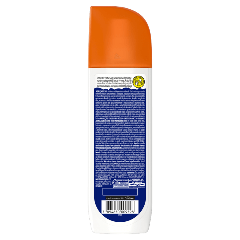 Advertência: Não aplicar a formulação em ambientes fechados. Aplicar nas áreas expostas somente quando necessário. Não aplique o produto excessivamente. A reaplicação contínua e saturação são desnecessárias. Não aplicar na região dos olhos, boca e mucosas. Não utilizar se a pele estiver irritada ou lesionada. Não pulverizar diretamente no rosto. Aplique com moderação ao redor das orelhas. A pessoa ficará protegida por até 10 horas, devendo após este período reaplicar o produto, obedecendo ao limite de somente 2 aplicações diárias. Lavar roupas contaminadas antes de reutilizá-las. Lavar as mãos com água e sabão após o uso. Em caso de irritação , interromper o uso. Não aplicar por baixo de roupas. Não aplicar sobre ou perto de: acetato, elastano, rayon, ou outros produtos sintéticos, móveis, plásticos, cristais de relógio, couro e superfícies pintadas ou envernizadas , incluindo automóveis. Produto não indicado para zonas endêmicas de malária. Conservar o produto longe do alcance de crianças e animais. Cuidado com os olhos. Irritante para os olhos. Em caso de contato com os olhos, lavar imediatamente com água corrente em abundância. Mantenha os olhos abertos e enxágue lentamente e suavemente com água por 15-20 minutos. Remover lentes de contato, se presentes, após os primeiros 5 minutos, e continuar enxaguando. Se a irritação persistir, procure imediatamente o atendimento médico. Evitar inalação do produto. Cuidado: perigoso se ingerido. Em caso de ingestão, procurar atendimento médico. Não induzir o vômito. Não dê nada por via oral á uma pessoa inconsciente. Em caso de intoxicação e/ou reações adversas, suspender o uso e procurar o Centro de Intoxicações (Disque Intoxicação: 0800 722 6001) ou Serviço de Saúde, levando a embalagem ou o rótulo do produto. Para uso durante a gravidez e amamentação, consulte um médico. Em caso de emergência médica ligue para 0800 701 0450. Não utilize ou guarde o produto perto do calor ou chamas. Atenção: o uso de repelentes não dispensa nem substitui as demais medidas de combate as doenças transmitidas por mosquitos. Não reutilizar a embalagem vazia. Guarde longe das chamas, superfícies aquecidas e fontes de ignição, em uma área inacessível ás crianças. Embalagem não reutilizável. Não usar em crianças menores de 12 anos.