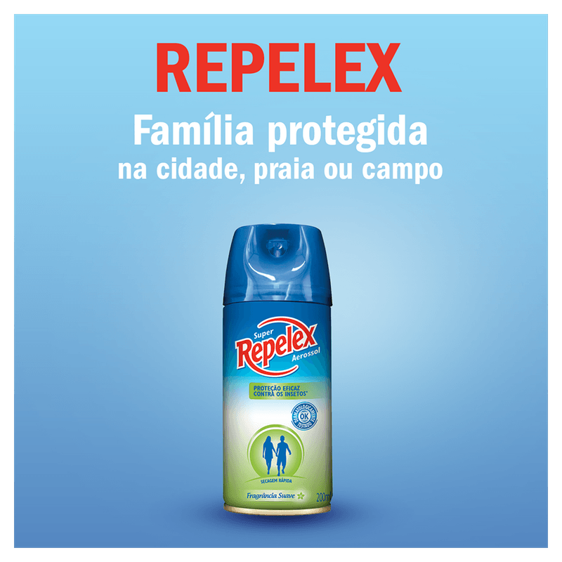Indicado para adultos e crianças com mais de 6 meses de idade, Repelex é um repelente para insetos de longa duração, em aerossol, que conta com DEET em sua formulação, substância reconhecidamente eficaz contra mosquitos transmissores de doenças como Dengue, Zika, Chikungunya, Febre Amarela e Filariose.
