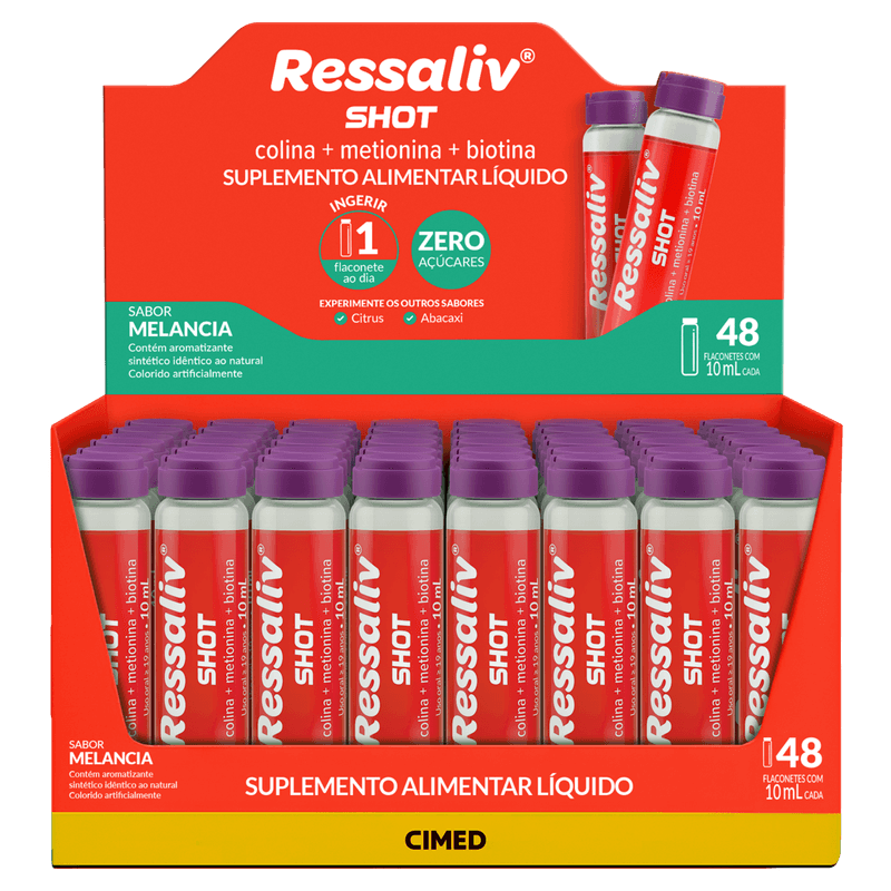 O Ressaliv Shot é um suplemento líquido indicado para auxiliar na hidratação e conforto da mucosa bucal, especialmente em casos de boca seca. É destinado a pessoas que necessitam de suporte para manter a umidade oral.