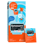 Rinosoro Alto Volume Baby é um pó para solução de lavagem nasal especialmente desenvolvido para crianças, contendo cloreto de sódio 9mg/ml. Seu principal diferencial é a capacidade de fluidificar a secreção nasal, proporcionando alívio imediato da congestão causada por gripes, resfriados, rinite e sinusite. Ideal para pais que buscam um cuidado seguro e eficaz para a saúde respiratória dos pequenos, o produto facilita a remoção de alérgenos e muco, melhorando a respiração infantil.