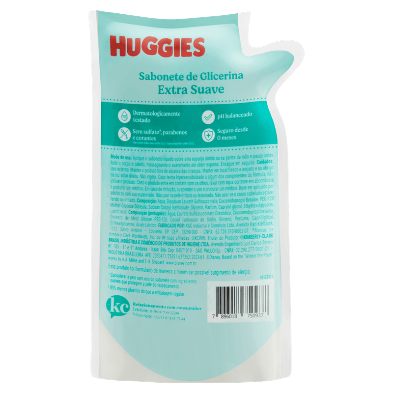 Sabonete Líquido de Glicerina Extra Suave Disney Baby Huggies Sachê 400ml Refil Embalagem EconômicaApresentamos o