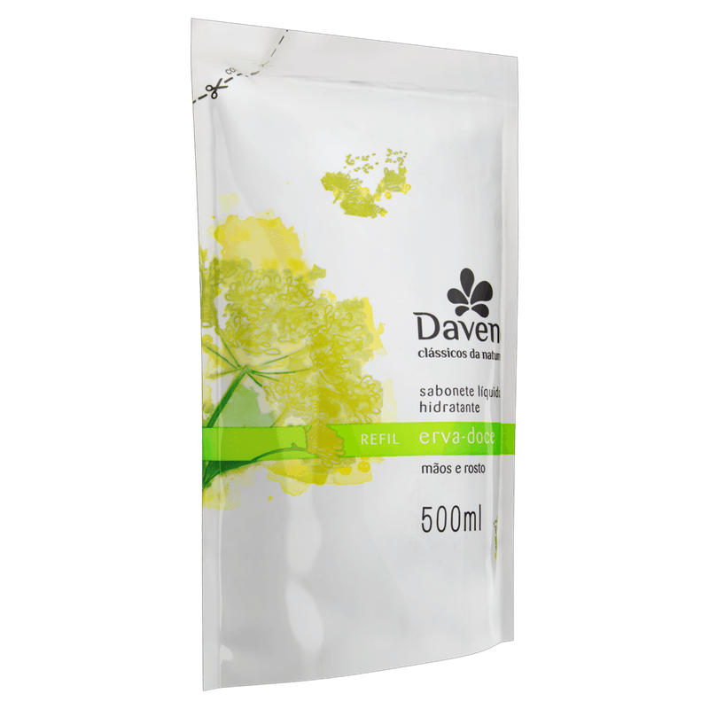 Sabonete Líquido Hidratante Mãos e Rosto Erva-Doce Davene Clássicos da Natureza Sachê 500ml Refil