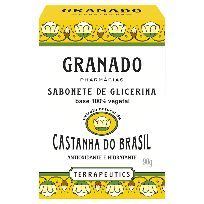 O Sabonete Barra de Glicerina Terrapeutics Castanha do Brasil da Granado, com 90g, é um sabonete indicado para limpeza delicada do corpo, proporcionando hidratação, maciez e toque aveludado. Sua fragrância exclusiva de Castanha do Brasil é adequada para todos os tipos de pele.