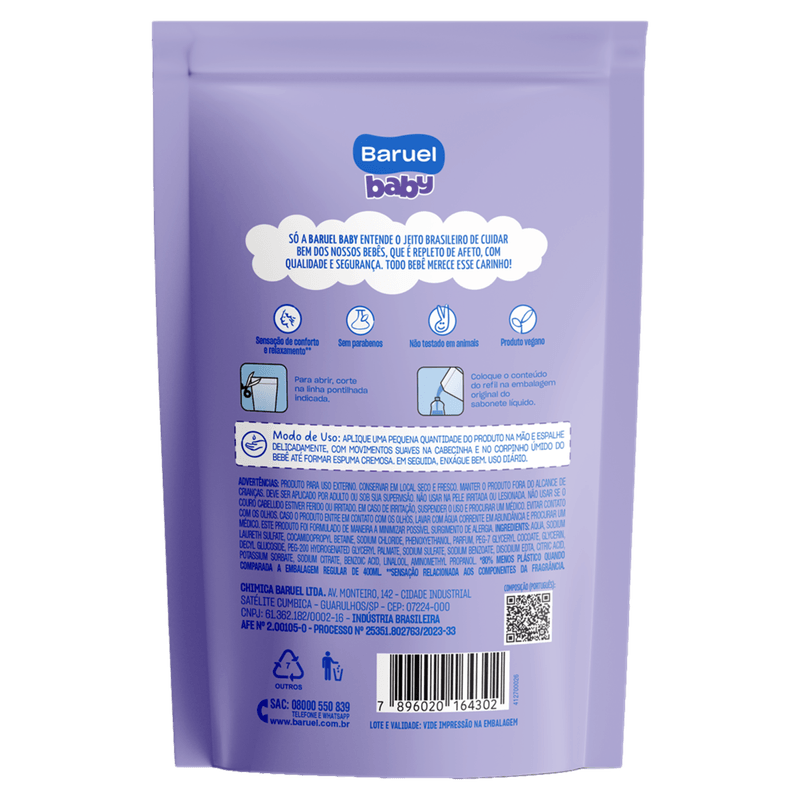 O Sabonete Líquido Sono Tranquilo Baruel Baby é ideal para a limpeza suave da pele delicada de bebês e crianças. Com fórmula hipoalergênica e sem lágrimas, proporciona um banho relaxante e seguro. Dermatologicamente testado, é livre de parabenos e corantes, garantindo segurança para a pele sensível. Com ingredientes de origem natural, como glicerina e essências de lavanda e bergamota, limpa e perfuma, deixando a pele dos pequenos com um cheirinho suave. O produto é vegano e não testado em animais, perfeito para quem busca opções conscientes. Para usar, aplique uma pequena quantidade nas mãos e espalhe suavemente no corpo e cabelo do bebê, enxaguando em seguida. O Sabonete Sono Tranquilo é a escolha ideal para a rotina de higiene dos pequenos, promovendo conforto e tranquilidade durante o banho.
