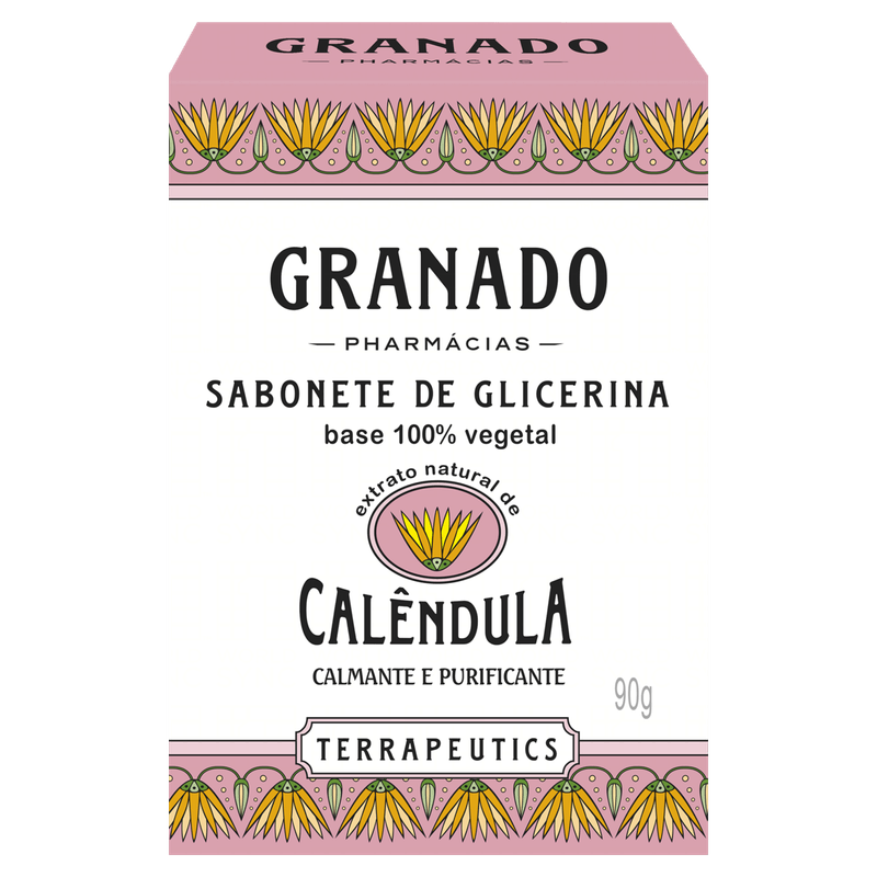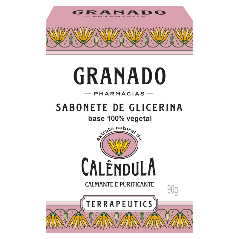 O Sabonete em Barra Terrapeutics Calêndula Glicerina Granado 90g é um sabonete de glicerina indicado para limpeza suave da pele sensível, com ação calmante e purificante graças ao extrato de calêndula. Desenvolvido com base 100% vegetal, proporciona maciez e perfumação delicada.