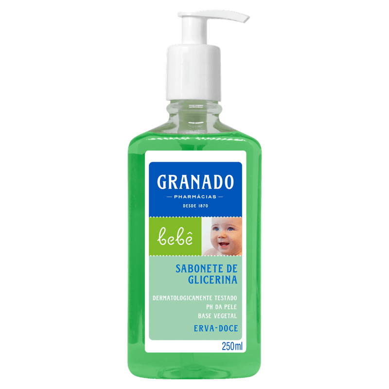 O Sabonete Líquido Bebê Glicerina Erva-doce Granado é apresentado em frasco plástico transparente com 250 ml, equipado com tampa pump para facilitar a dosagem. Indicado para recém-nascidos, bebês e crianças pequenas, é formulado para a limpeza e proteção da pele delicada, promovendo hidratação suave e minimizando o risco de irritações.