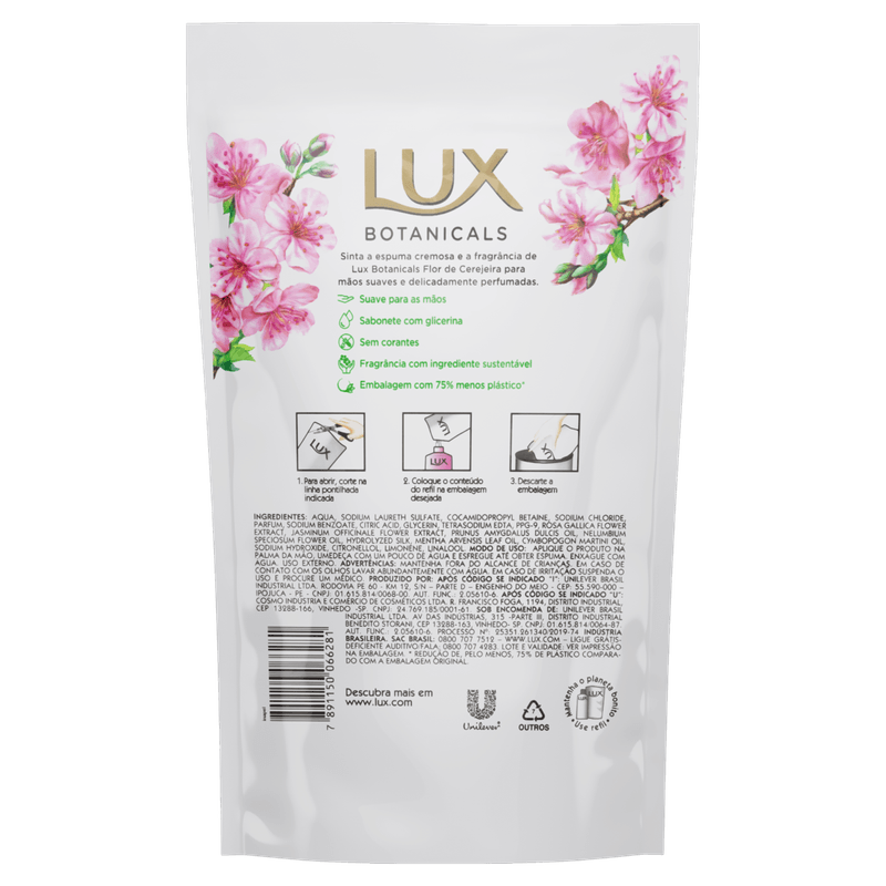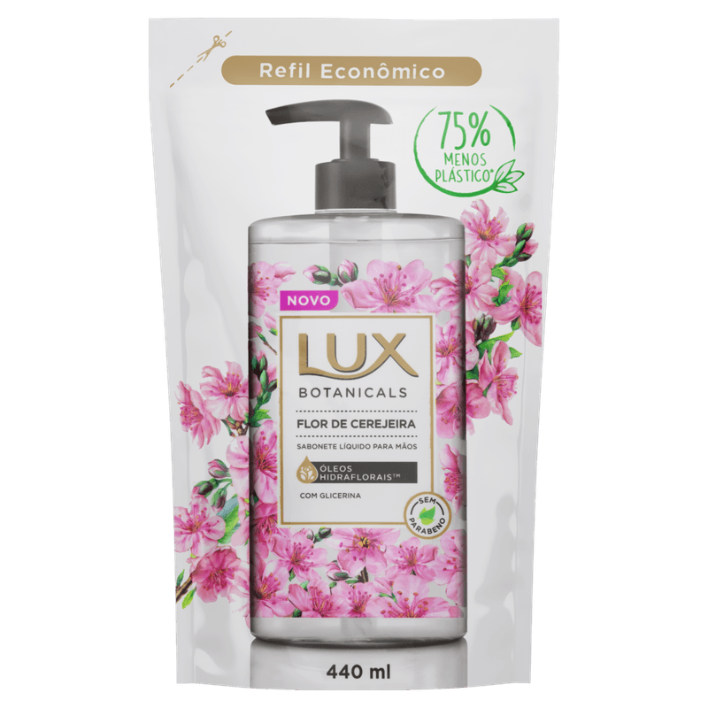 O Sabonete Líquido para Mãos Refil Lux Botanicals Flor de Cerejeira possui uma exclusiva combinação de delicadas fragrâncias e Óleos Hidraflorais extraídos da natureza. Além de possuir Óleos Hidraflorais, uma mistura exclusiva de extratos de flores e óleos essenciais.