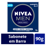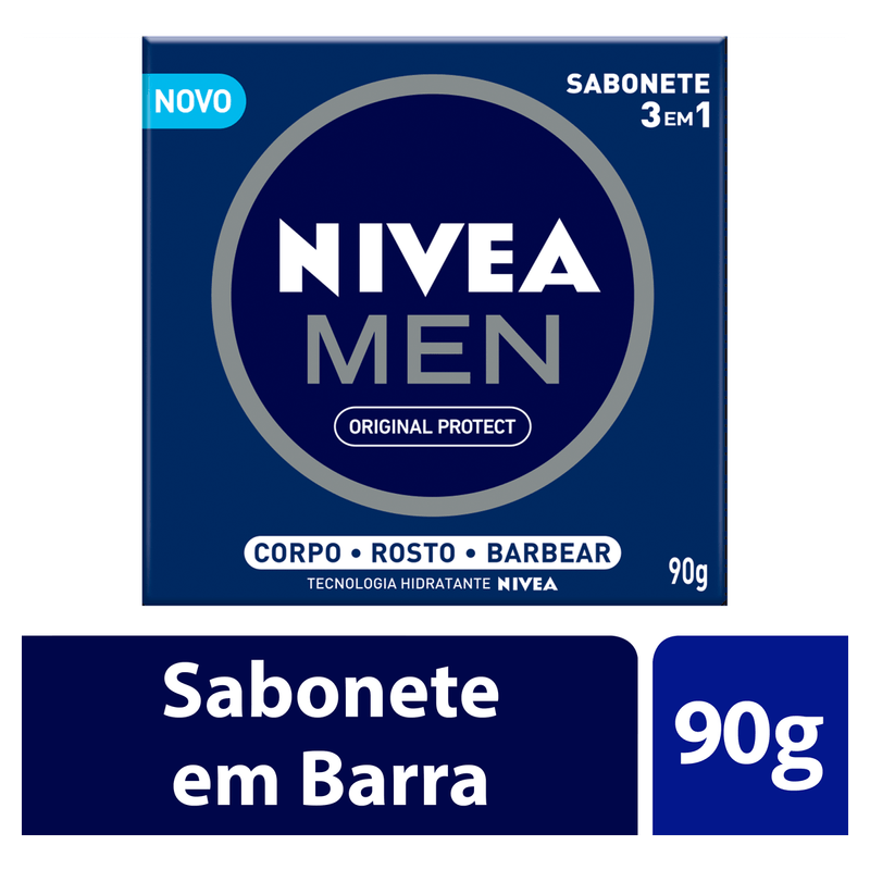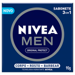 O Sabonete em Barra Men Original Protect 3 em 1 da Nivea é um sabonete em barra de 90g desenvolvido para a limpeza do rosto, corpo e barbear, oferecendo proteção e maciez para a pele masculina com fragrância suave.