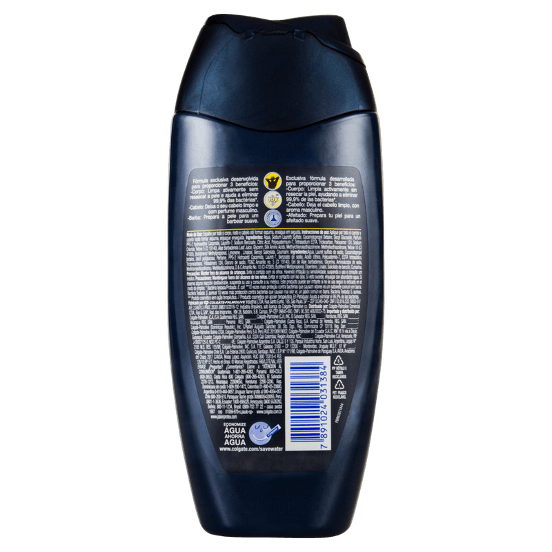Aplique o sabonete líquido sobre a pele, cabelo ou barba úmidos, massageando até formar espuma. Enxágue completamente. Use diariamente conforme necessidade. Conserve o produto em local fresco e ao abrigo da luz.
